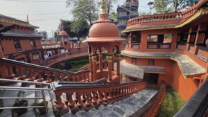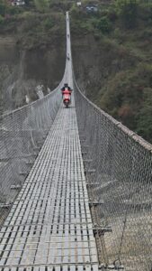 Afterwards, we headed to the Hanging Bridge of Pokhara, a suspension bridge nearly 100m high and 300m long, where even I needed a brief moment to pluck up the courage halfway across. It was absolutely mad to see a moped crossing the bridge whilst we were there. Finally, on that Saturday evening, we visited the shopping street, which was lined with chic shops, hotels and restaurants and was bustling with locals and tourists alike. It reminded us both very much of the shopping streets in many Italian holiday destinations.