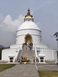 Nach unserer Rückkehr von Poon Hill hatten wir noch 3 weitere Nächte in Pokhara. Da uns beide eine fiese Erkältung heimgesucht hat und sich auch gelegentlich leichtes Fieber unterschummelte, haben wir die letzte Zeit in Nepal sehr entspannt verbracht. Am ersten Vormittag in Pokhara haben wir den „Devi’s Fall“ Wasserfall, die Tropfsteinhöhle „Gupteshwor Mahadev Cave“ und das World Peace Pagoda besucht. Ersteres war für uns beide recht enttäuschend, da wir in Island, als auch in Österreich bereits um einiges imposantere Wasserfälle gesehen haben. Die Höhle im Vergleich dazu war um definitiv interessanter. Um den Zugang zu erreichen, mussten wir durch eine kleine, aber sehr feine Tempelanlage und in der Höhle selbst befand sich ein großer Gebetsschrein, in dem sogar eine Messe abgehalten wurde während wir dort waren. Abschließend das World Peace Pagoda, ein imposantes Bauwerk, das die Stadt Pokhara von einem himmlischen Podest aus überragt. Abends haben wir dann in einem sehr idyllischen koreanischen Restaurant, dem Hankook Sarang, verbracht, bevor wir uns zur Ruhe gelegt haben.