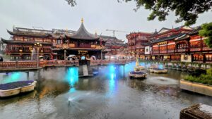 When we arrived, it was unfortunately closed due to the bad weather, but we discovered the nearby Yuyuan Bazaar and got lost in it. A really lovely area with small shopping alleys and cafés in traditional Chinese style – definitely the highlight of the day.