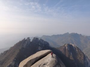 Wir begannen den zweiten Teil unserer Zeit in Seoul mit einer frühmorgendlichen Wanderung auf den höchsten Gipfel des Bukhansan National Parks. Nach unserer anstrengenden Wanderung auf Mt. Hallasan haben wir uns für eine etwas herausforderndere, aber um ein vielfaches kürzere Route entschieden und sind dafür belohnt worden. Die Wanderung war fantastisch, der Weg hat viel mehr unseren Vorlieben entsprochen und war um einiges spannender, als wir bisher gewohnt waren und nach einer Distanz von nur 5km waren wir nicht gleich für den restlichen Tag unbrauchbar. Und auch wenn der Gipfel nur auf ca. 850m liegt, war die Aussicht und unser Feeling trotzdem äußerst belohnend.