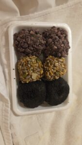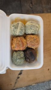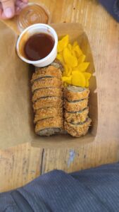 In Jeju haben wir uns auch zum ersten Mal auf einem Streetfood-Market durchgekostet, im Seogwipo Maeil Olle Market. Hier haben wir mit einer frittierten black pork Rolle, gefüllt mit Reis und Gemüse, gestartet, ein frittiertes Träumchen, und uns dann über Kleinigkeiten weiter zu einer Variation von gefüllten koreanischen Teigtaschen bis hin zu einer Art Mochi durchgekostet. Letzteres muss ich sagen war ein wenig gewöhnungsbedürftig.