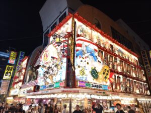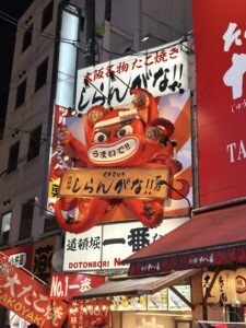 So wie wir den Tag begonnen hatten, beendeten wir ihn auch wieder. Mit einem erneuten, diesmal abendlichen, Besuch im Dotonbori, um dort das Getümmel und die leuchtenden Figuren und Reklametafeln zu erleben, die die Stadt bis jetzt vor uns verborgen hielt. Unerwarteterweise endete der Abend mit einer Menge Streetfood und chaotischem Karaoke.