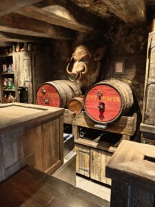 Auch die thematischen Restaurants, Speisen und Getränke, die in jedem Bereich anzufinden waren, waren eine Sehenswürdigkeit für sich. Von Calzone Pizza in Mariokarts grüner Panzer Form über Raptorenburger zu einem britisch inspirierten Mittagessen im „The Three Broomsticks“ mit Butterbier waren die Restaurants und Speisen selbst schon ein kleines Highlight.