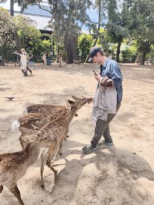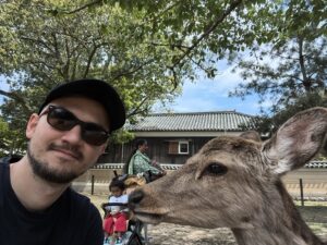 Der nächste Tag begann diesmal wieder etwas entspannter, nach einem guten Frühstück in einem wirklich netten kleinen Café, geführt von einem älteren japanischen Pärchen, ging es für uns mit dem Zug nach Nara, Destination Nara Park. Es dauerte keine 5 Minuten von der Station bis wir schon das erste Reh am Gehsteig erblickten und kurze Zeit später gab es auch schon die Reh-Snacks zu kaufen und Feuer frei für das Reh-tümmel. Was folgt, war ein riesiges Parkareal, eng vernetzt mit diversen kleinen Tempel und Museumsanlagen mit Pfade die von Rehen und Menschen gleichermaßen gefüllt waren. Man kann Nara definitiv eine beliebte Touristenattraktion nennen.